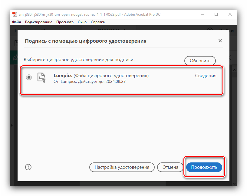 Нажмите «Поставить цифровую подпись». Удерживая левую кнопку мыши, выберите область, в которой подпись должна находиться. Затем выберите ее образец из указанного хранилища.