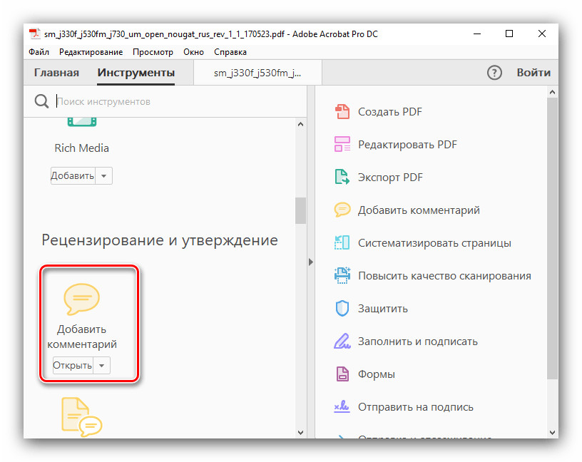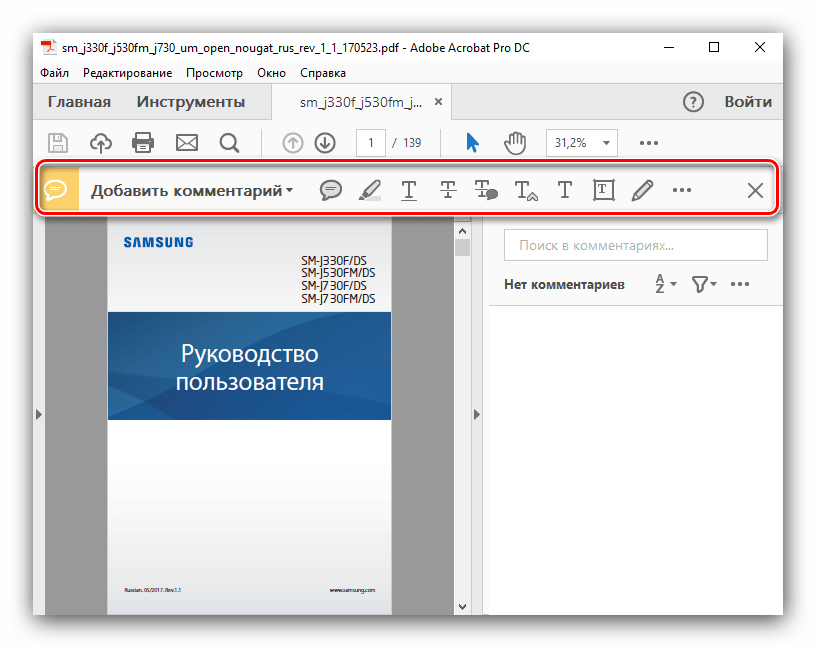 Примечание. В этом документе приведены инструкции по использованию Acrobat DC или 2017. Инструкции по работе в Acrobat XI приведены в справке по Acrobat XI.