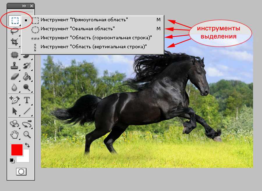 Программа Adobe Photoshop имеет 5 основных наборов инструментов выделения. Они сгруппированы по принципу обработки изображения и выбора точек, которые попадут в выделенную область.