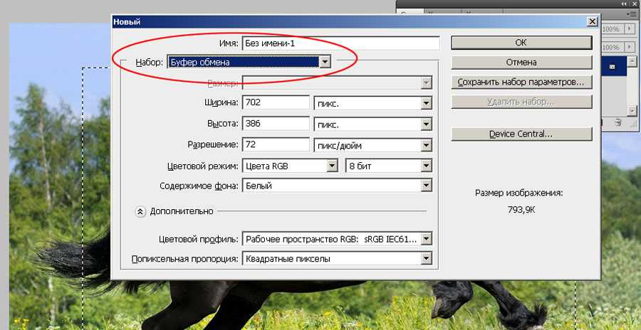 - В возникшем окне выберите предустановки размера «Буфер обмена», задайте имя файла, нажмите «ОК».