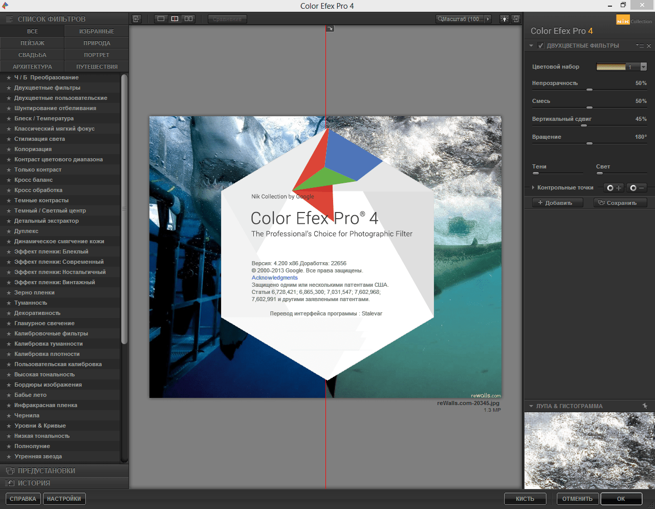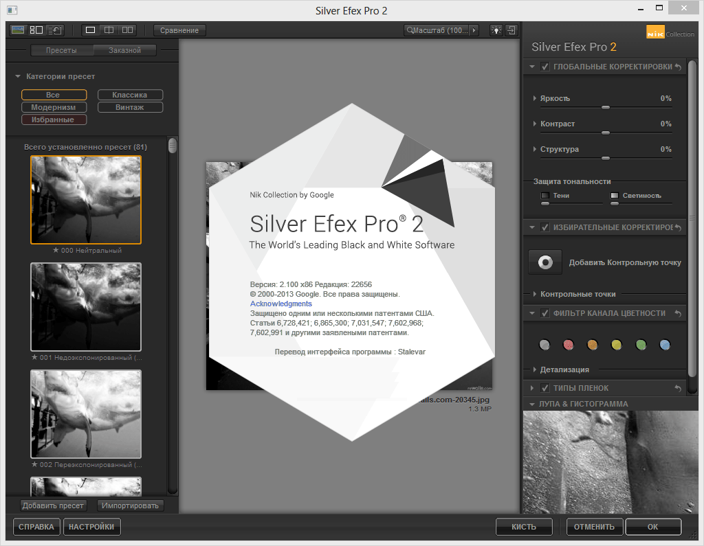 Silver Efex Pro создает не просто черно-белые фото, а имитирует приемы, создаваемые в фотолабораториях. Имеет 20 фильтров, поэтому пользователю будет где развернуться в своем творчестве.
