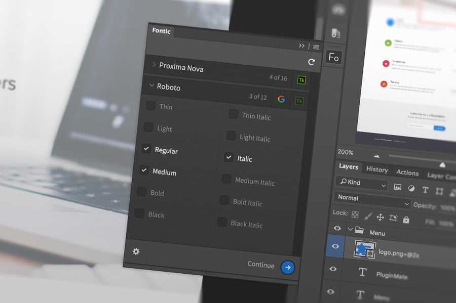 Fontea – бесплатный плагин для Photoshop, который предоставляет мгновенный доступ ко всем шрифтам Google и позволяет классифицировать их по своему усмотрению.