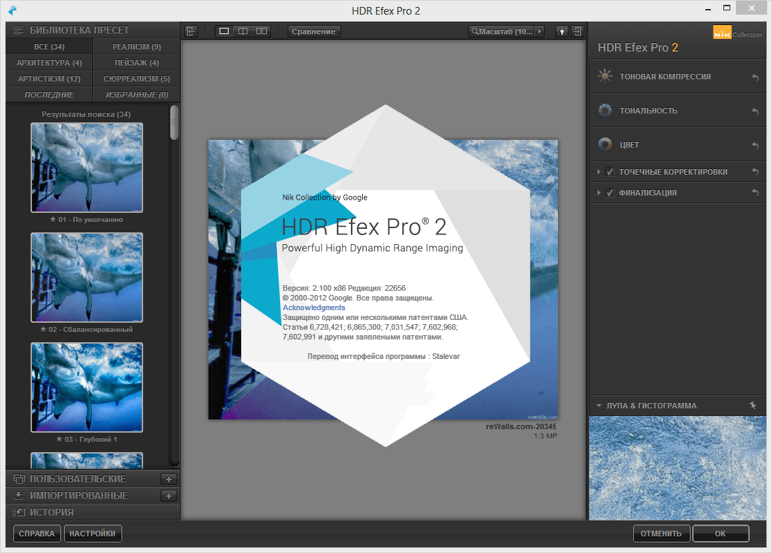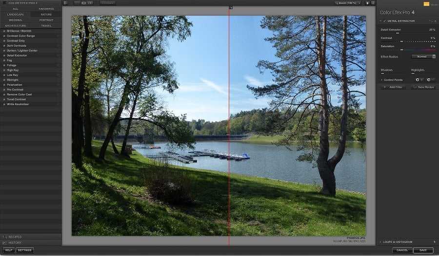 Если вам нужно настроить правильное освещение или создать красивый художественный эффект, то HDR Efex Pro поможет вам в этом. Вы можете в начале воспользоваться готовыми фильтрами, а детали доработать вручную.