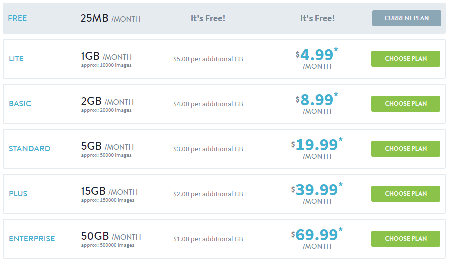 Проблема в том, что . Разработчики дают 25 МБ для оптимизации картинок, после чего нужно выбирать тарифный план. Примеры тарифов, как всегда, на скриншоте ниже.
