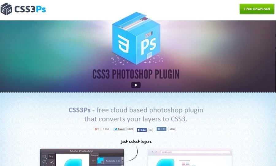 CSS3Ps – бесплатный Photoshop плагин, способный создавать CSS-код из вашего документа PSD. Плагин в настоящее время распознает и правильно обрабатывает такие функции CSS3, как border–radius, масштаб, градиенты, тени и т.д. Кроме этого, он также совместим с SASS для Compass.