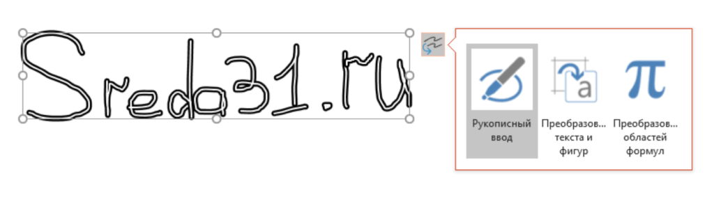 Довольно удобно, что с помощью инструментов рисования можно записать текст от руки, а затем распознать его и превратить в печатный. Соответствующий инструмент появится слева от написанного вручную текста: