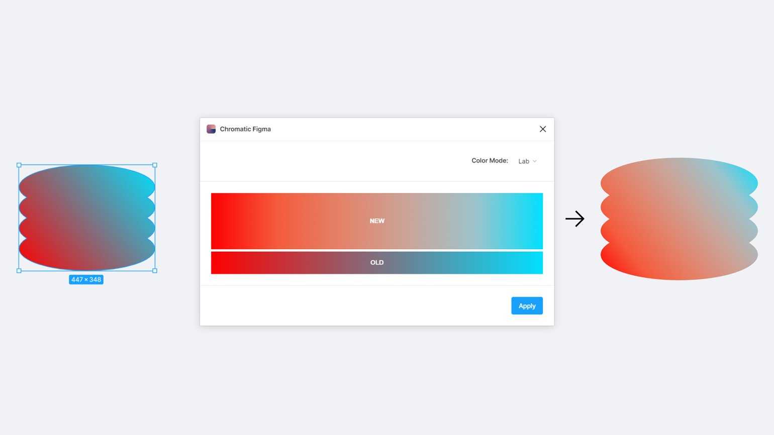 В Figma градиенты исправляются через плагин Chromatic Figma. Выделите фигуру с градиентом, запустите плагин Chromatic Figma, выберите Fix Gradient и нажмите Apply.