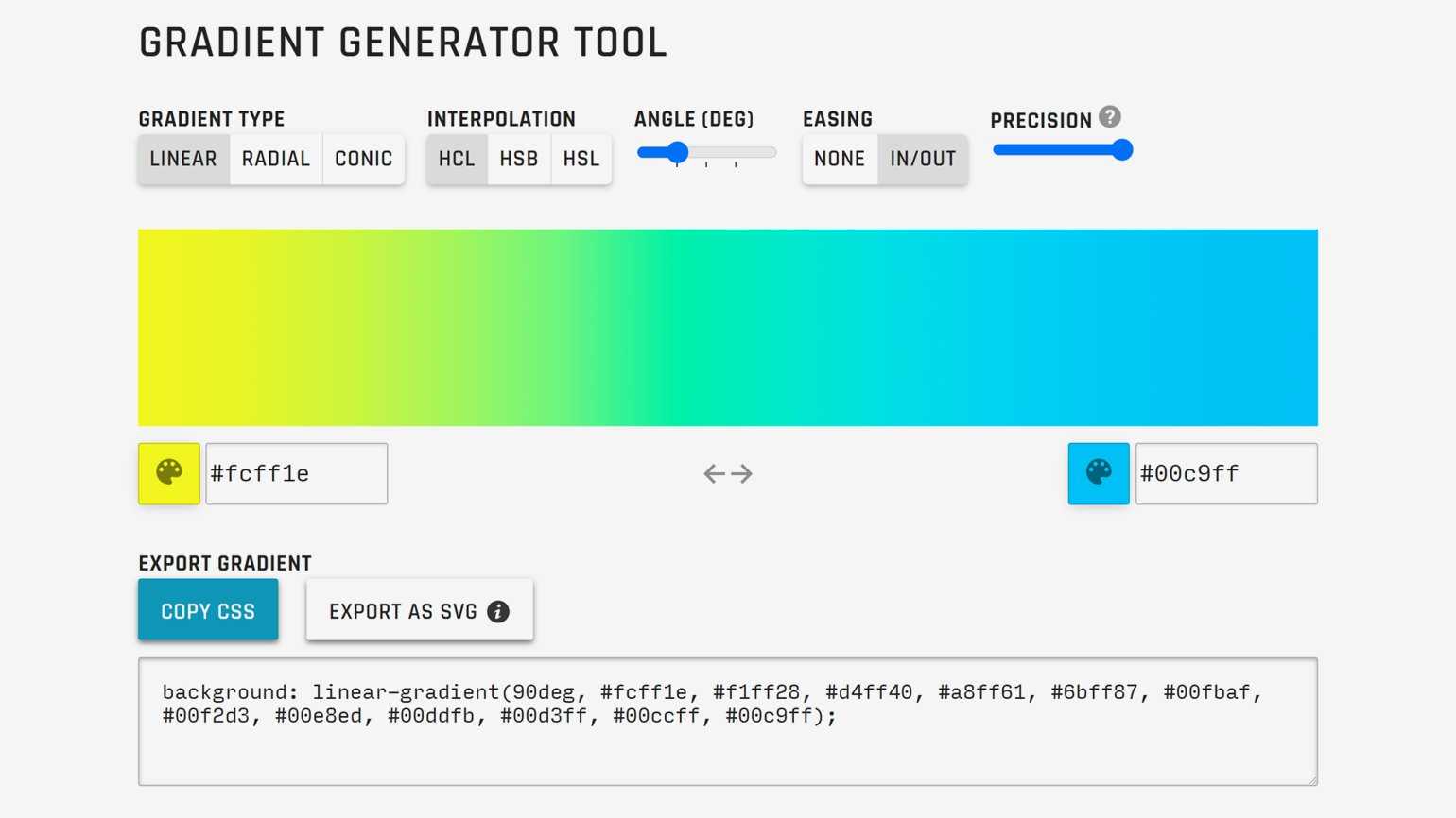 Для разработчиков, которым нужно вставить градиент на сайт при помощи CSS, сервис создаёт код, который можно скопировать.