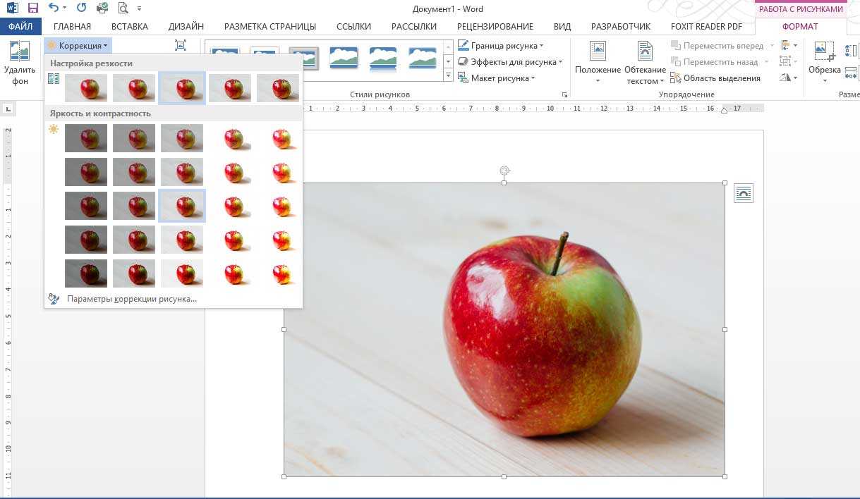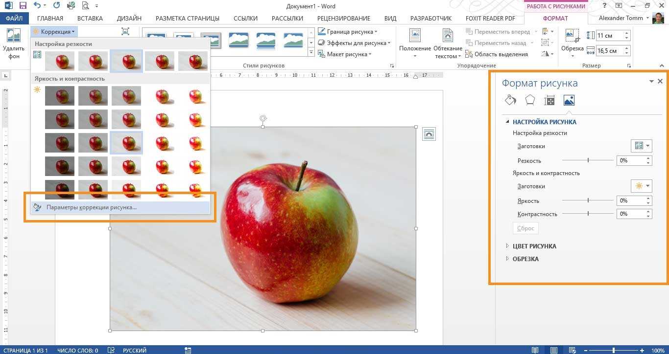 Если рисунок недостаточно резкий, яркий или контрастный, воспользуйтесь автоматической корректировкой. Нажмите на ленте Коррекция