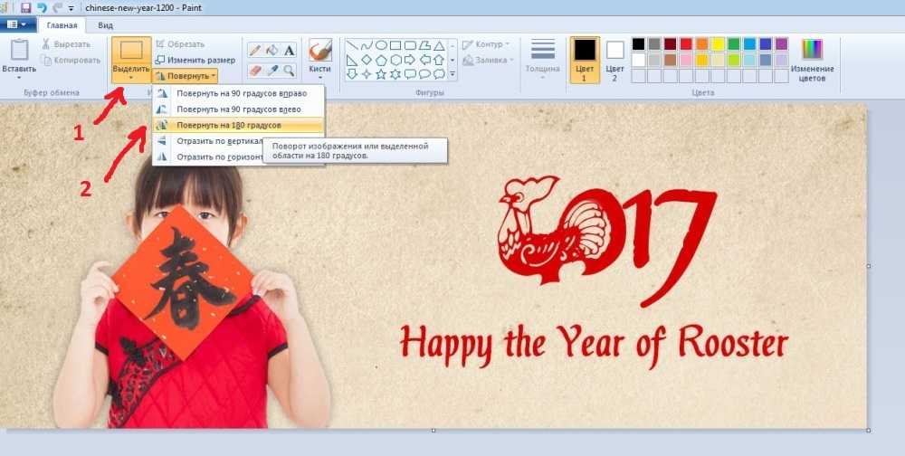 Как повернуть картинку на 90, 180, несколько градусов в Паинте (Paint)