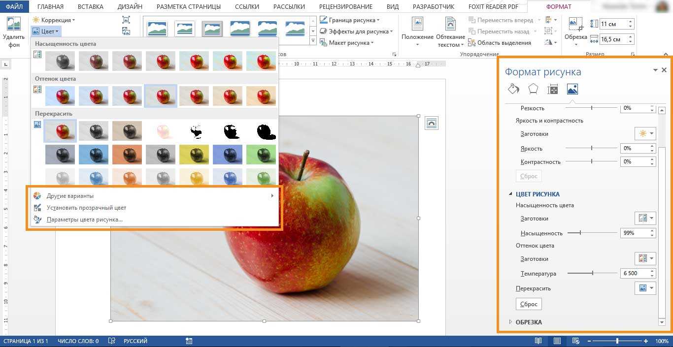 Цветовая корректировка изображений может сделать Ваш документ более привлекательным и эффектным, а так же исключает необходимость использования других программ для улучшения изображений. Например, Photoshop.