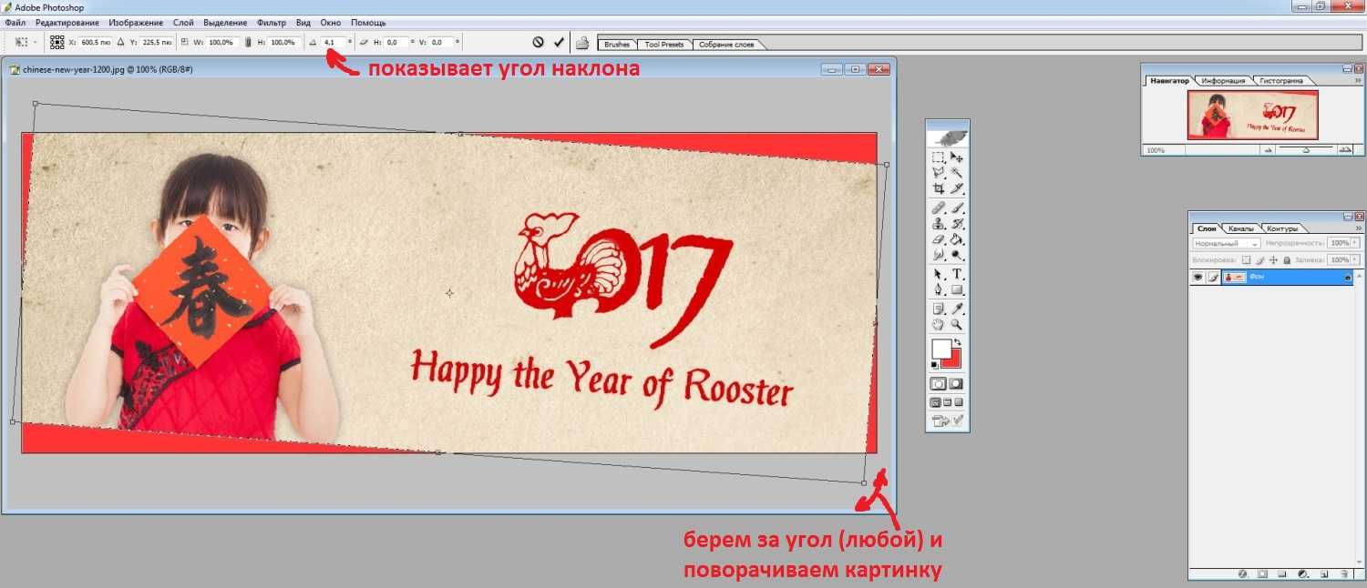 Как повернуть картинку на 90, 180, несколько градусов в Фотошоп (photoshop)