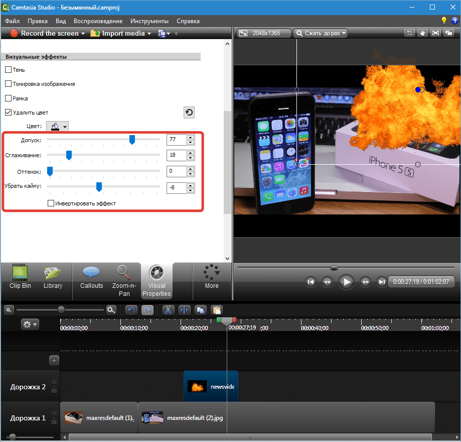 Ещё один пример. Наложим другое изображение на наш клип и удалим черный фон.