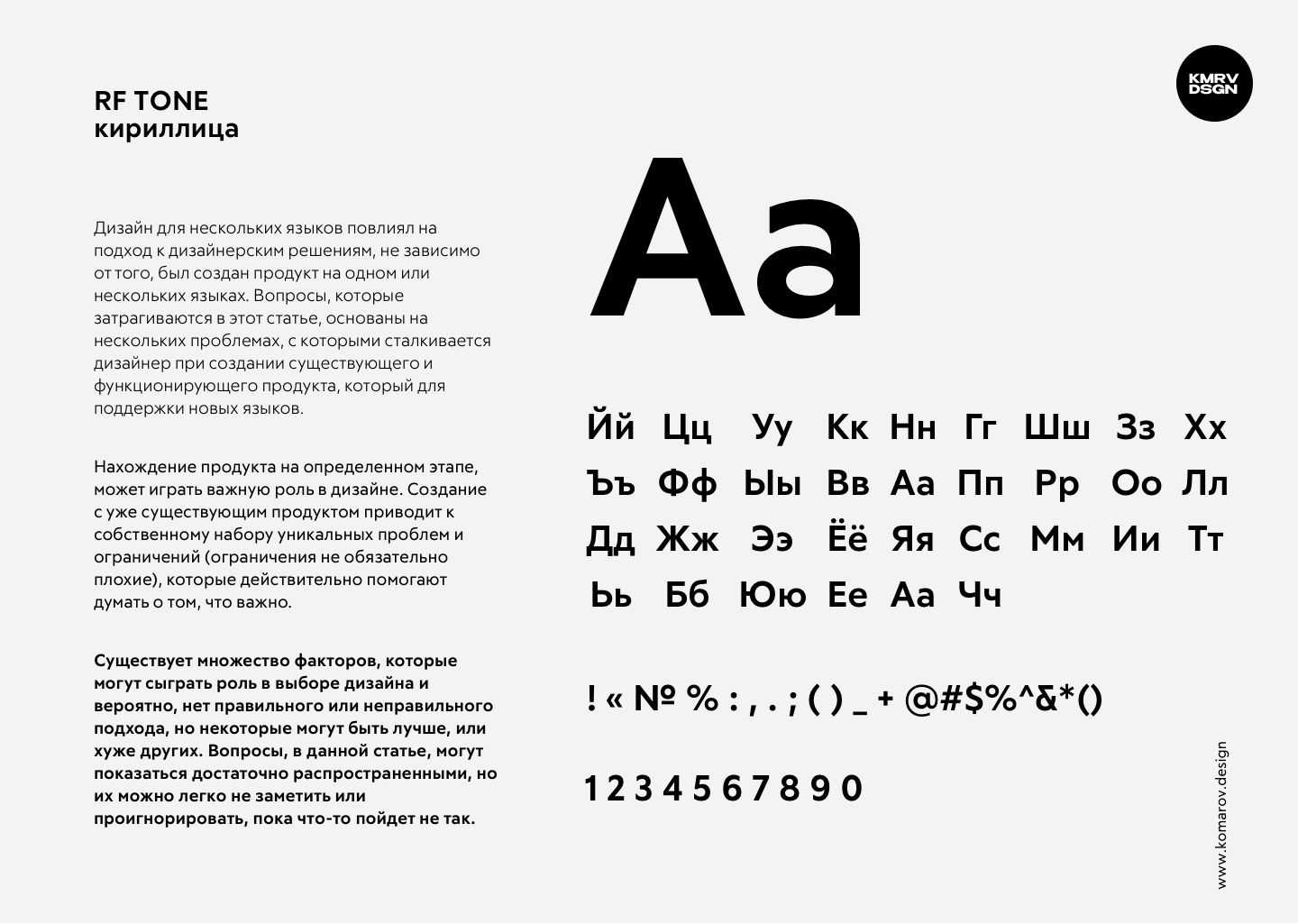В этом шрифте мне очень нравится как выглядят крупные заголовки. Кстати, к созданию этого шрифта я даже немного причастен. Мне очень понравился этот шрифт, но после покупки, оказалось, что там есть проблемы с некоторыми кириллическими буквами. Они были сделаны неправильно. Поправили вместе с издателями кириллицу и теперь он полностью готов к использованию. Мой фаворит 2020 года.