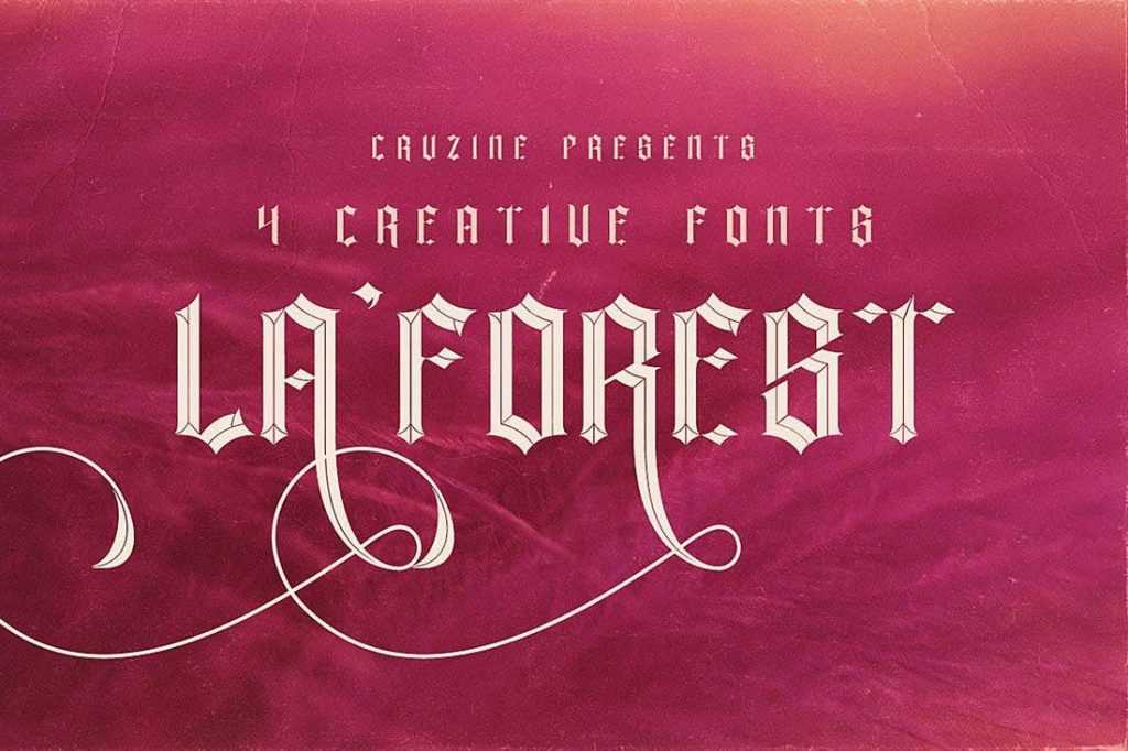Этот шрифт blackletter также использует узкий и сжатый дизайн, что делает его идеальным выбором для разработки современного заголовка веб-сайта или дизайна логотипа. Шрифт также поставляется для различных типов дизайнерских работ.