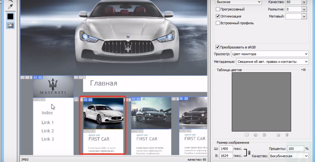 Обратите внимание – что эти значения указываются для каждого выбранного элемента по отдельности, т.е. вы можете различные фрагменты одного шаблона сохранять в разных форматах и с разной степенью качества