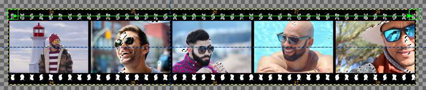 Добавьте две направляющие по центру (вертикальную и горизонтальную). С помощью инструмента Перемещение расположите фотоленту как показано на скриншоте ниже.