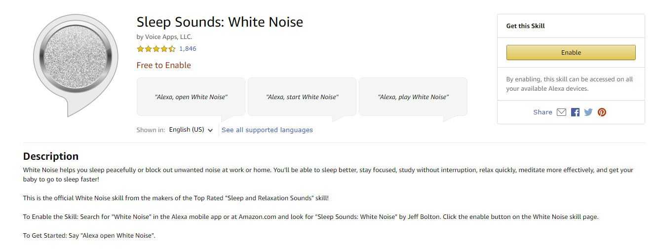 Sleep Sounds: White Noise — еще одно отличное приложение с белым шумом для оборудования Amazon Alexa, такое как Echo и Echo dot , с набором отличных расслабляющих звуков и простых голосовых команд для их запроса. Это немного напористо, когда просишь обзоры, и зацикливание звука не идеальное, но это отличное бесплатное приложение, которое делает большую часть того, что ты хочешь, в машине с белым шумом.