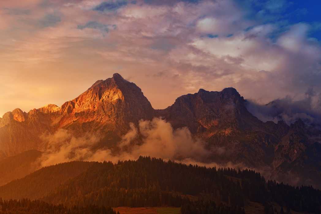 Для создания нашей композиции понадобятся фотографии гор, облаков и каких нибудь объектов на передний план — например, вагончика канатной дороги.