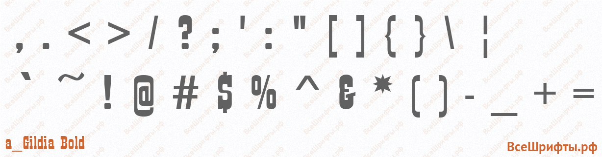 Предварительный просмотр шрифта «a_Gildia Bold» со знаками препинания и пунктуации (, . / ? ; ‘ : » { } \ | ` ~ ! @ # $ % ^ & * ( ) — _ + =).