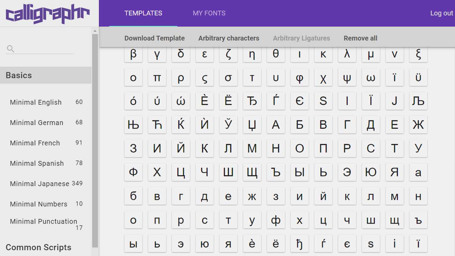 Calligraphr предназначен для создания рукописных шрифтов. Чтобы сделать свой шрифт, буквы нужно написать на специально распечатанном шаблоне (поэтому у вас должен быть принтер), после чего отсканировать или сфотографировать готовый бланк и загрузить его в систему. Рукописные знаки система преобразует в векторные цифровые символы. В программе есть функция Character Randomizer, которая сохраняет дух леттеринга, меняя размер рукописных букв. Также есть опция трекинга и объединения букв в лигатуры.