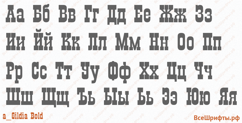 Предварительный просмотр шрифта «a_Gildia Bold» с прописными и строчными русскими буквами (кириллица, русский алфавит А-Я и а-я).