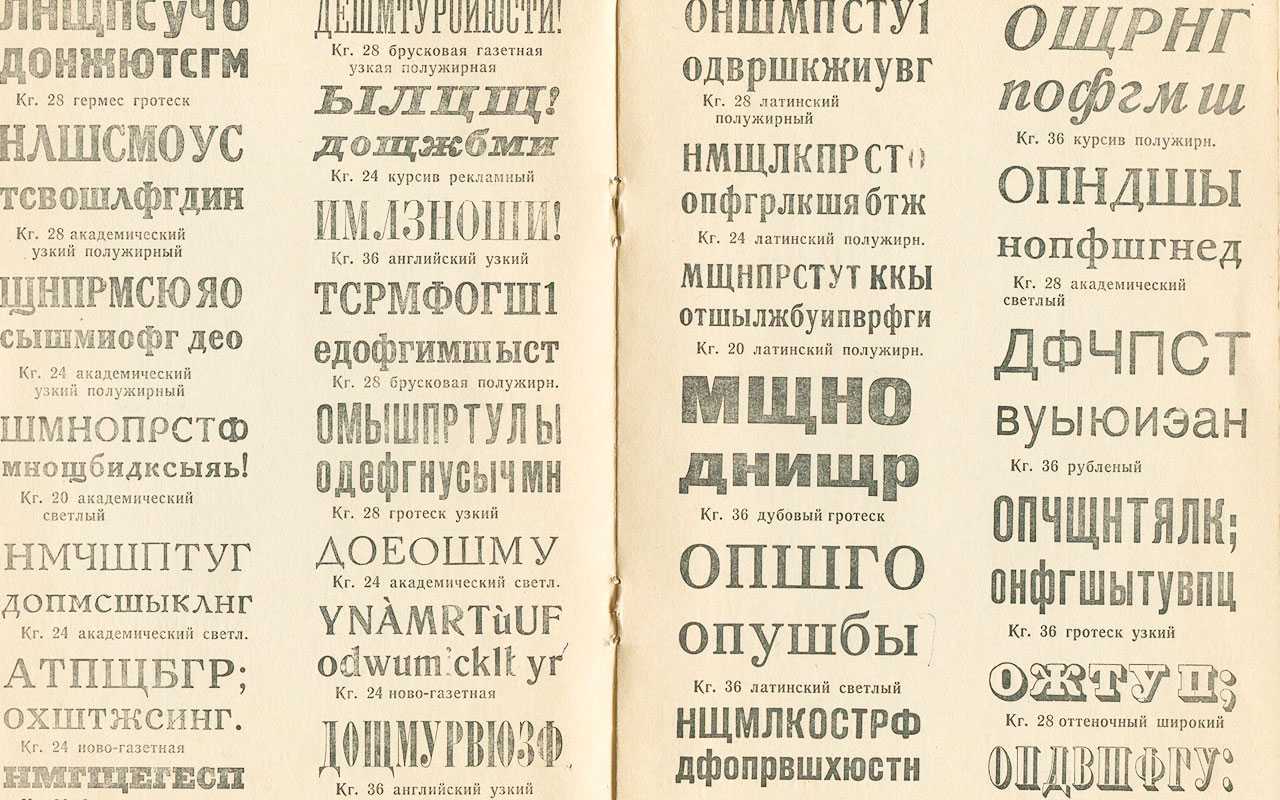 СССР с самого начала своего существования взялась за реформу русского правописания: буквы, которые затрудняли изучение русского языка, были изъяты, а грамматика стала более упрощенной и доступной. Одновременно проводилась работа по разработке типографских гарнитур — все их приводили к соответствию Государственному общесоюзному стандарту (ГОСТу), исключая только рукописные и рисованные шрифты, выступавшие элементом оформления или декора.
