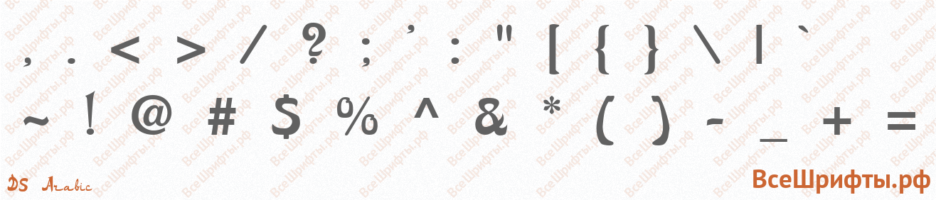 Предварительный просмотр шрифта «DS Arabic» со знаками препинания и пунктуации (, . / ? ; ‘ : » [ { } \ | ` ~ ! @ # $ % ^ & * ( ) — _ + =).