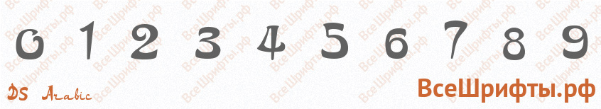 Предварительный просмотр шрифта «DS Arabic» с цифрами (0 1 2 3 4 5 6 7 8 9).