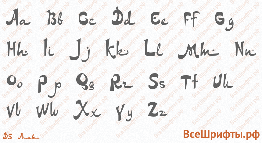 Предварительный просмотр шрифта «DS Arabic» с прописными и строчными латинскими буквами (английский алфавит A-Z и a-z).