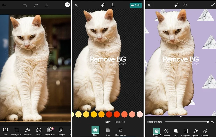 PicsArt — популярный мобильный фоторедактор, в котором можно найти огромное количество творческих фильтров. Помимо готовых пресетов, приложение также позволяет проводить ручную обработку снимков. Среди функций PicsArt — ретушь, стикеры, эффекты, работа с текстом, создание коллажей, рисование и многое другое. Также Пиксарт позволяет вырезать фон с фото за несколько быстрых действий. Приложение можно использовать бесплатно, но некоторые функции доступны только в премиум-версии, в том числе удаление задника.