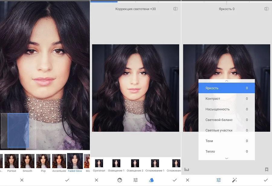 Snapseed — бесплатный мобильный редактор фотографий на Андроид, который предлагает пользователям библиотеку пресетов для мгновенной стилизации и набор инструментов для ручного редактирования. Среди функций можно найти такие интересные функции, как поворот головы, эффект HDR, быстрая ретушь