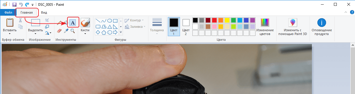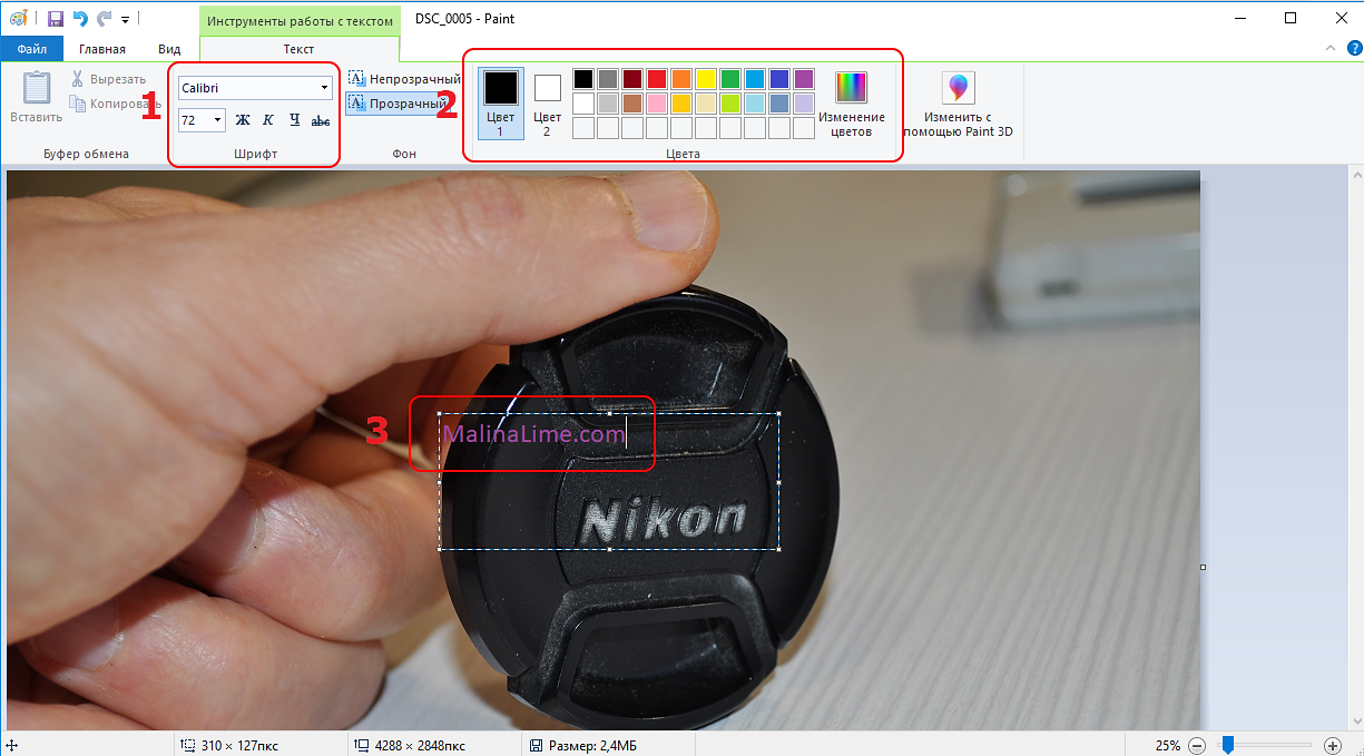Надпись на фото в стиле водяного знака в программе Paint