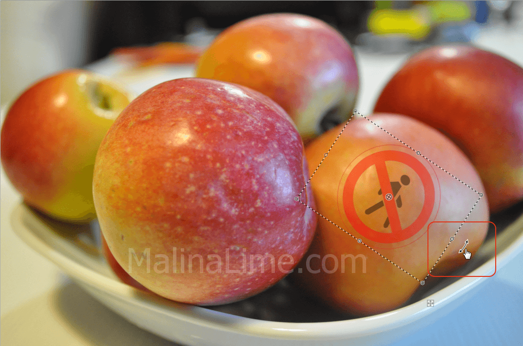 После того, как вы написали текст водяного знака, вы можете изменить его размер, перенести в другое место, повернуть на определённый угол примерно следующим образом:
