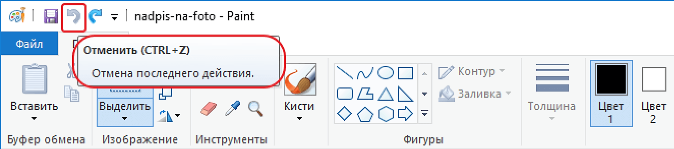Отменить действие в редакторе Paint