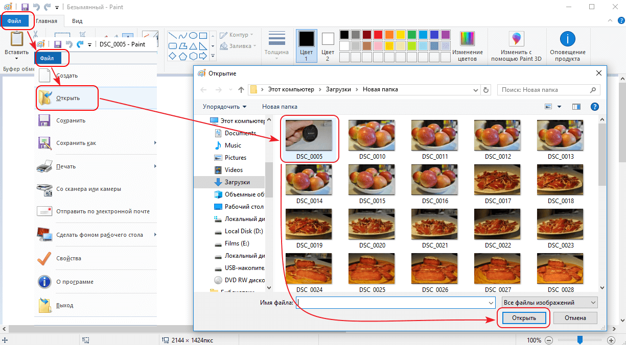 Открытие фото в Paint